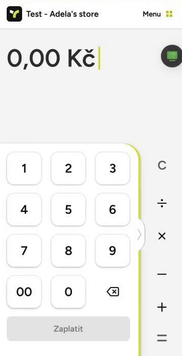 Pokud se váš terminál nachází v manuální režimu (vidíte kalkulačku) a chcete jej propojit s pokladnou, postupujte následovně: