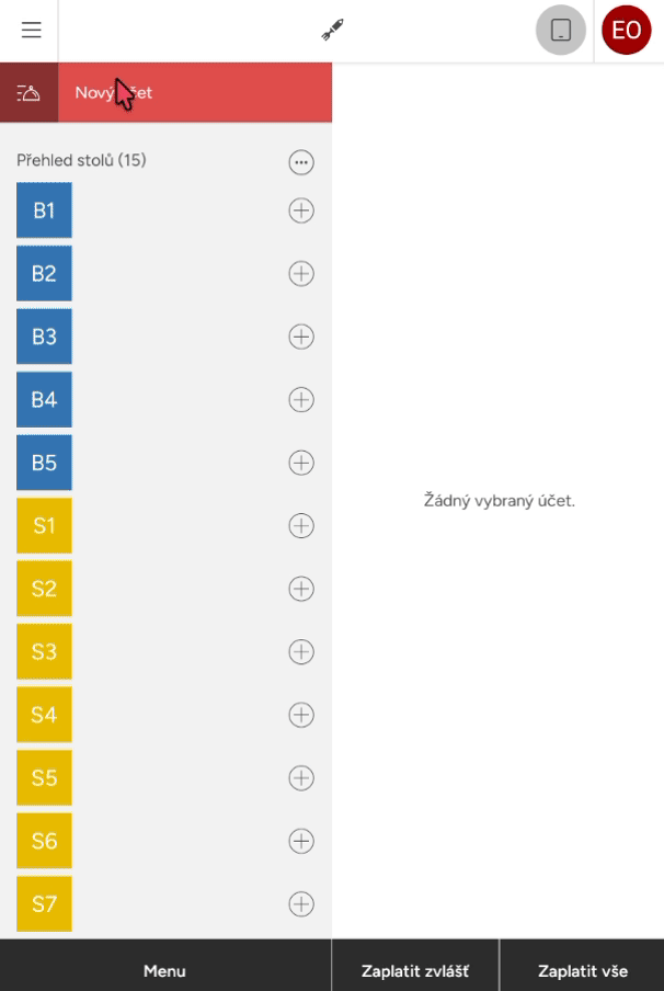 - Vytvořte Nový účet nebo vyberte otevřený účet v aplikaci Storyous na pokladně.