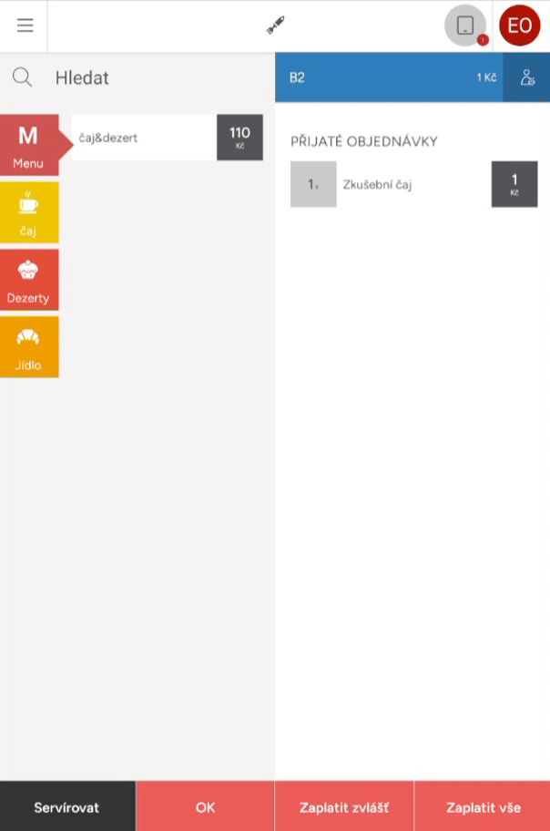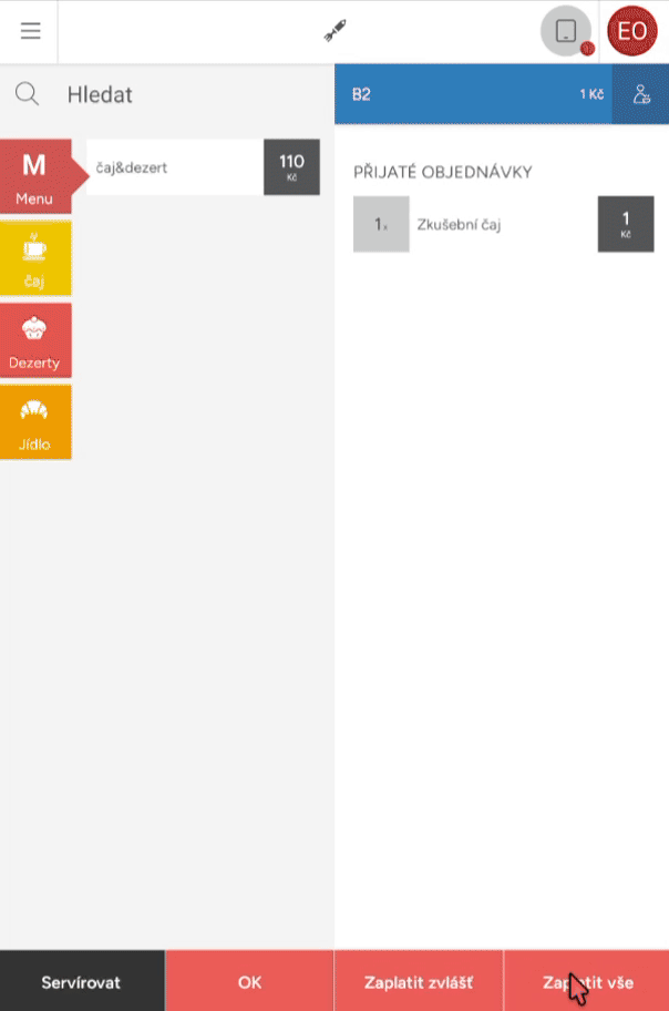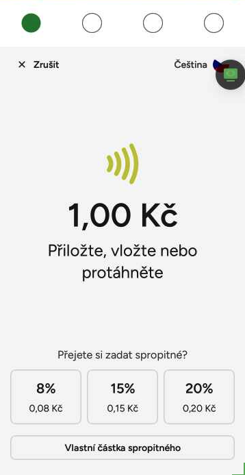 - Platba se automaticky zobrazí na terminálu nebo v terminálové aplikaci na mobilním číšníkovi.